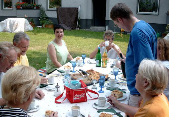 Ein heißer Tag im August in einem Garten in Köln ... gestärkt mit Kaffee und Kuchen, die Füße vor dem Tanztraining etwas gekühlt - jetzt kann's losgehen: |